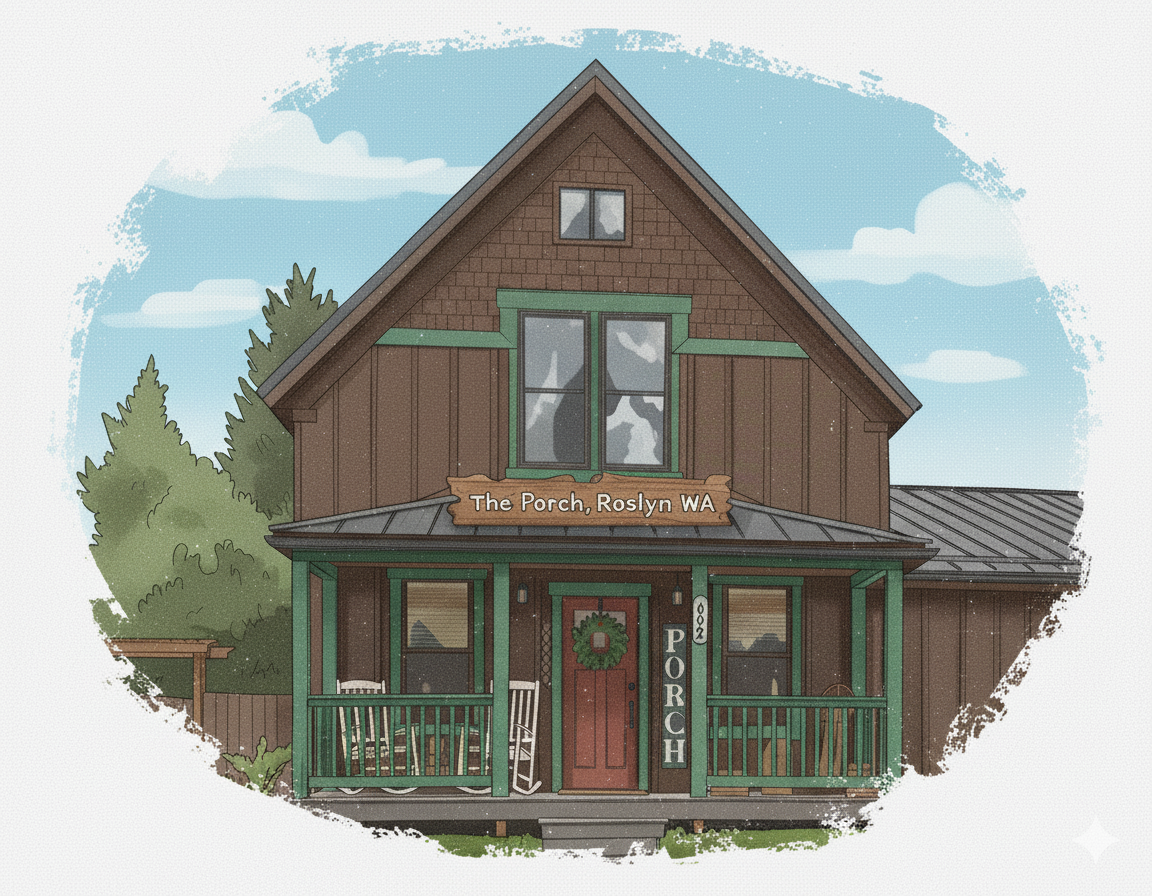 Tucked between the forested ridges of the Cascades and the clear waters of Lake Cle Elum, historic Roslyn is a town that invites you to slow down and explore. From The Porch, you’re just a few blocks from everything — coffee at "The Merc", shopping at Shandee's, wine tasting at Corks, dinner at the The Coal Chute, live music at The Brick, and soaking up local culture at the summer Sunday farmers market.